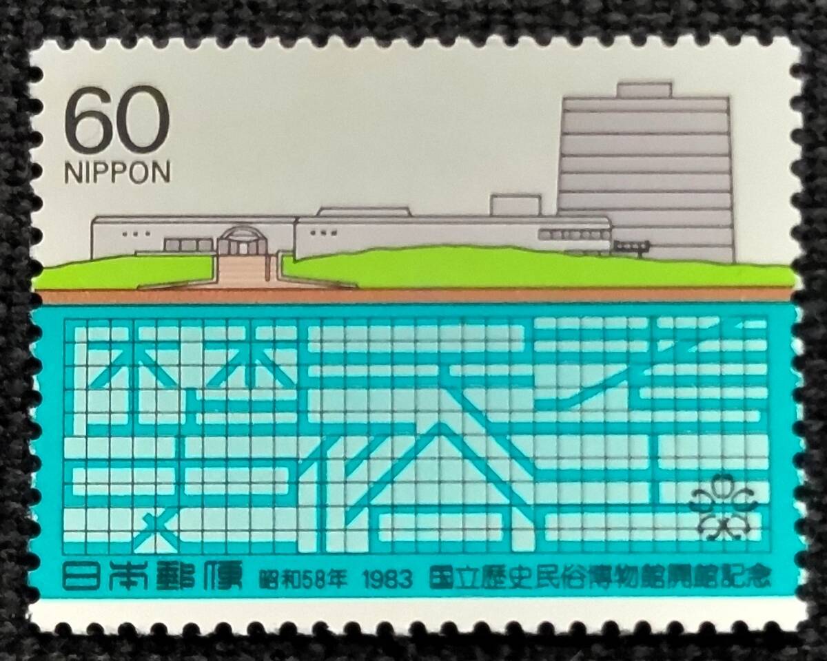 - [24032312]【国立歴史民俗博物館開館記念】単片「歴史民俗博物館とデザイン化した文字」60円 1983年発行 美品 *