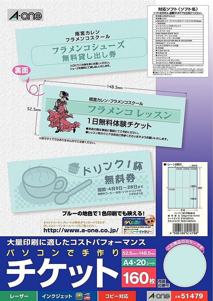 - メール便発送 エーワン コピー用紙 手作りチケット 160枚分 8面 ブルー 51479