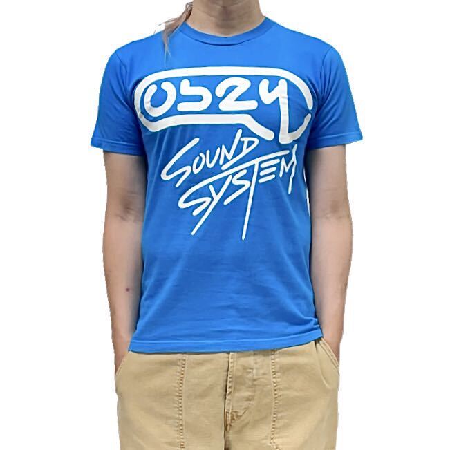 > 中古 OBEY オベイ ブランドロゴ SOUND SYSTEM ストリートグラフィティ Tシャツ ブルー Sサイズ ジャマイカ reggae レゲエ 野外 RAVE レイヴ