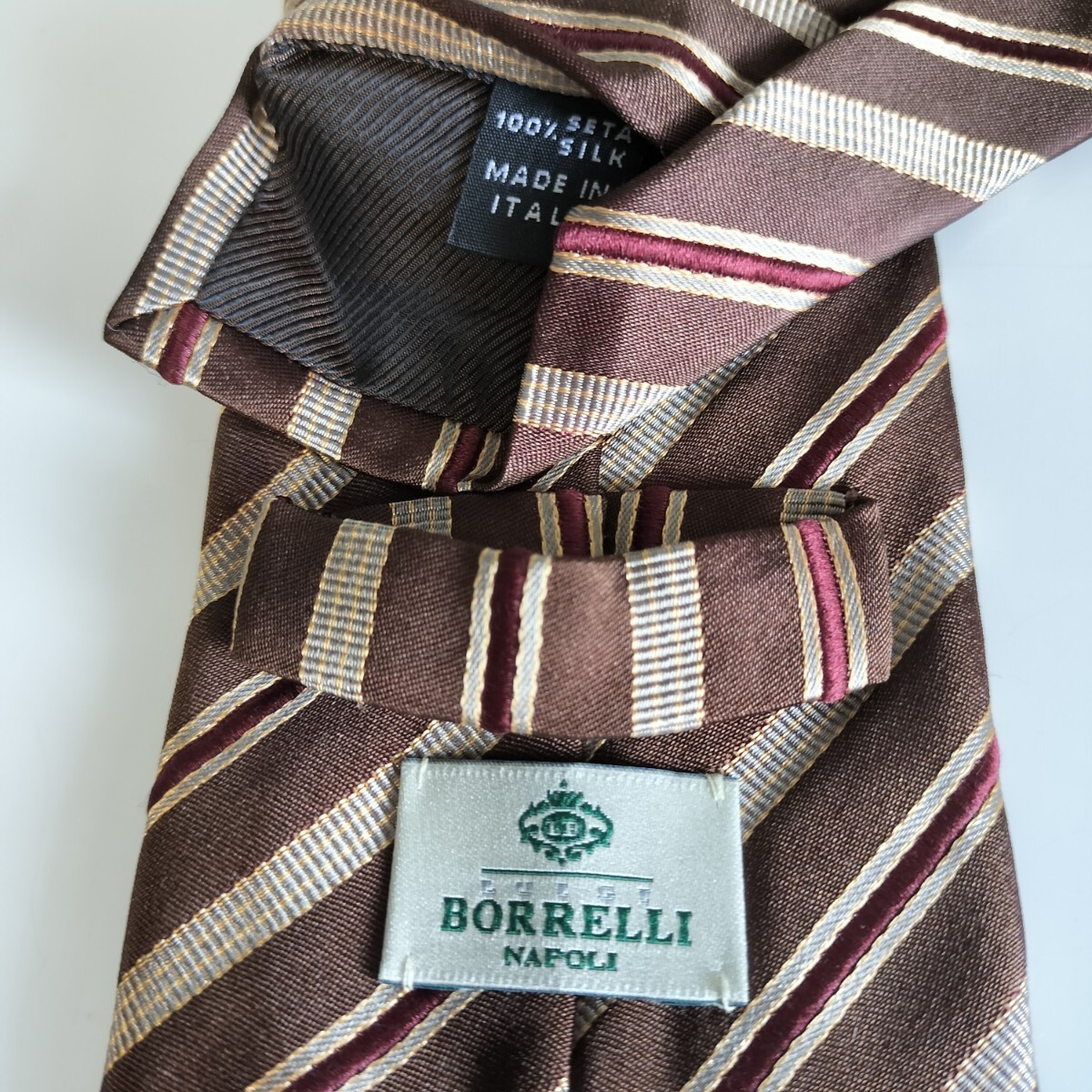 - LUIGI BORRELLI(ルイジボレッリ)茶色ストライプネクタイ