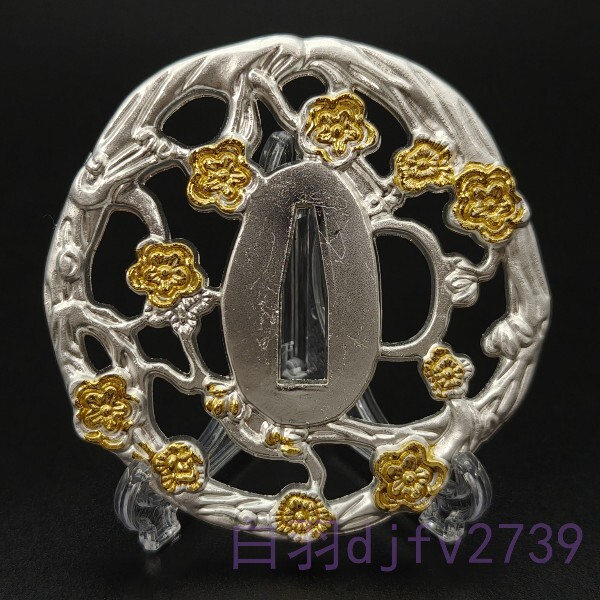 - SY110 日本刀装具 刀鍔 桜樹図 合金製 現代品 つば ツバ 刀剣美術 重さ約103G 厚さ約6MM