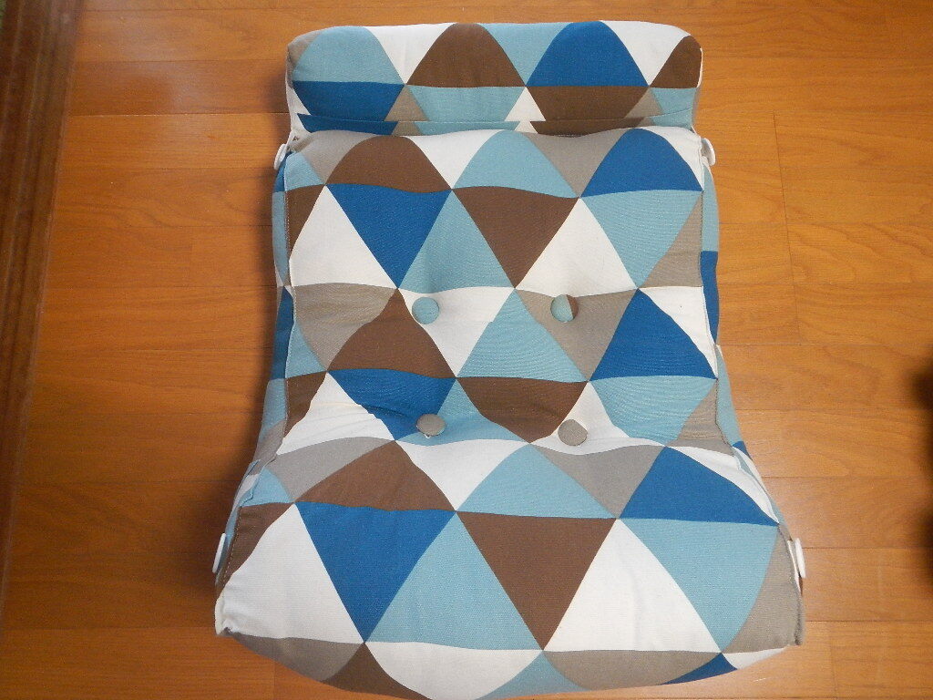 > オシャレ 背もたれクッション デルタチェック柄 ブルー×ブラウン×ベージュ ベッド・ソファー・座椅子