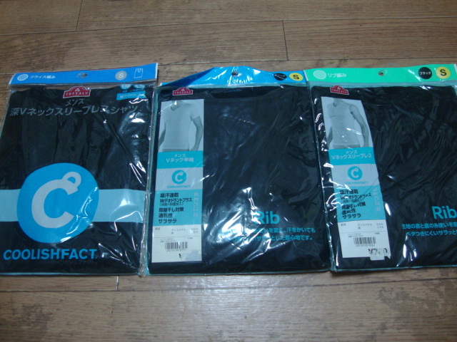 - ★ 新品・送料無料 COOLISHFACT Vネック半袖Tシャツ 3枚 サイズS ブラック タンクトップ リブ編み TOPVALU ★