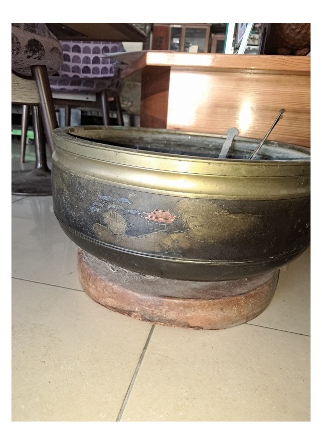 - C3A【新長イイ田代060704】真鍮火鉢 直径50cm位 重いです。