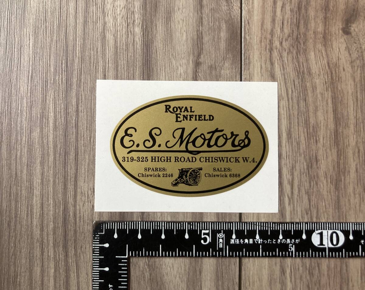 - 送料無料 Royal Enfield E.S. Motors ロイヤルエンフィールド ステッカー ゴールド 68mm x 44mm