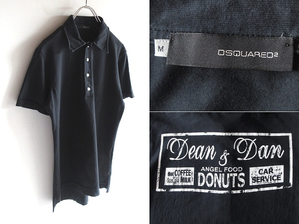 > 希少 00sビンテージ DSQUARED2 ディースクエアード 2004SS Dean&Dan バックプリント ダメージ加工 ポロシャツ M ブラック 黒 イタリア製