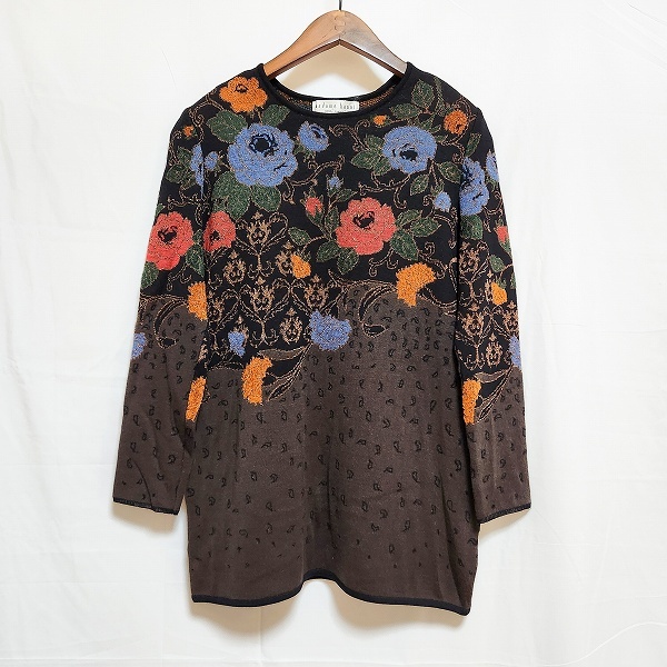 - #wnc ユキコハナイ 花井幸子 マダムハナイ ニット セーター 9A 黒 茶 マルチ 薔薇柄 カーネーション柄 花柄 ラメ レディース [887956]