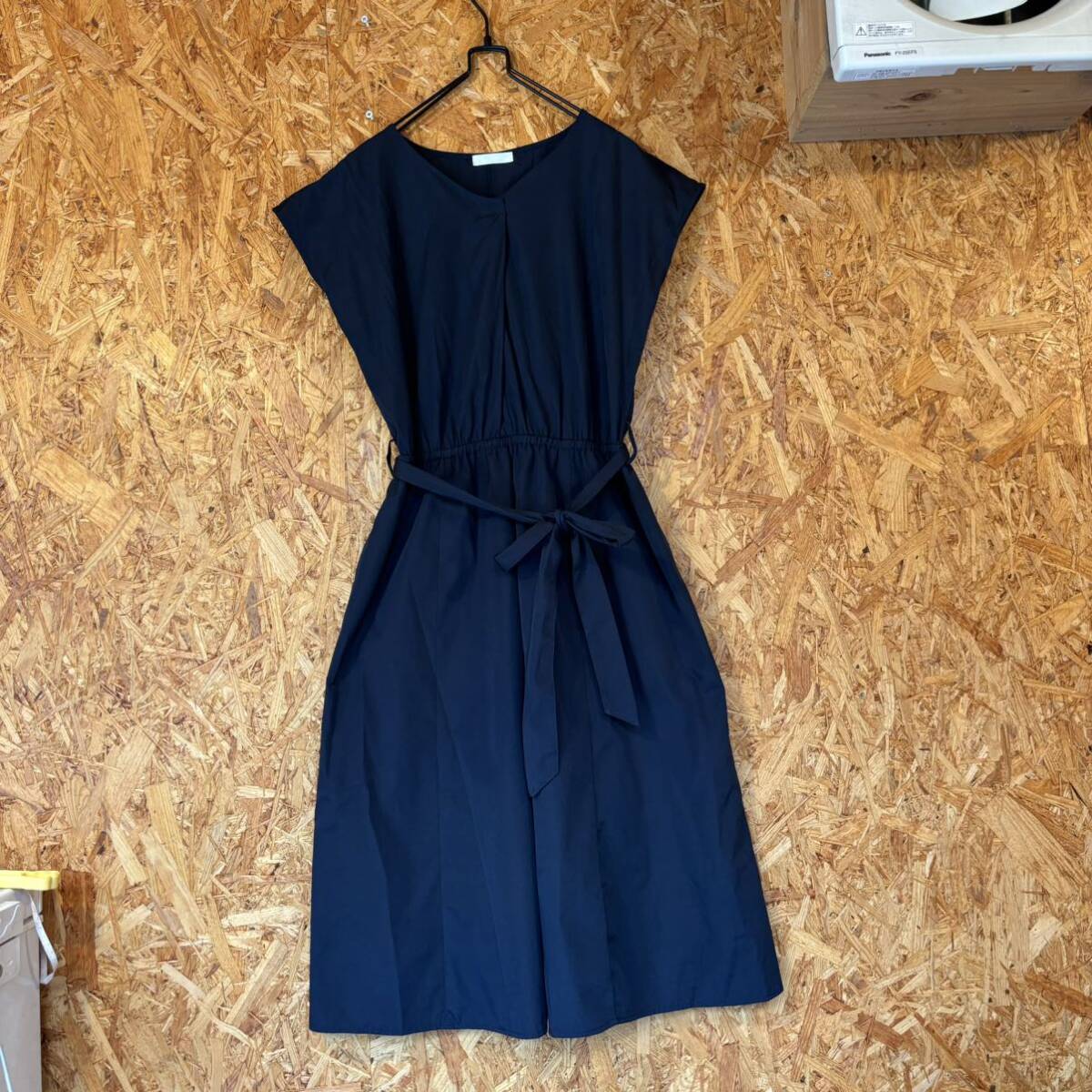 - 美品 DRESKIP フレンチリーブ 半袖ワンピース ひざ丈ワンピース ネイビー 3549