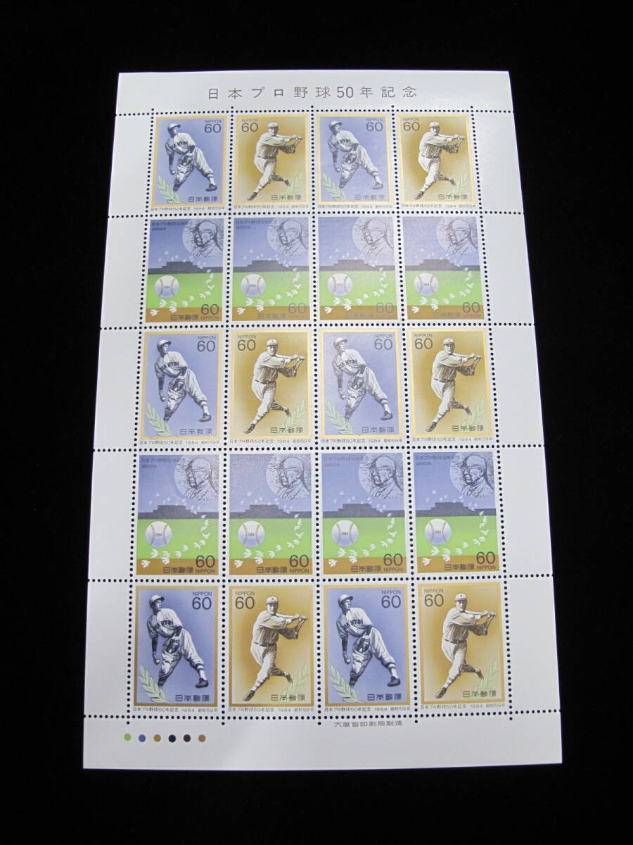 - 日本プロ野球50年記念 60円 記念切手シート ①