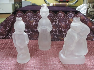 > ★ガラスの瓶 空き瓶 蓋なし 置物として 人の形 高さ16~19.5cm 横5.5~8.5cm ※汚れ・底に少々欠けあり tm2407-23-1★