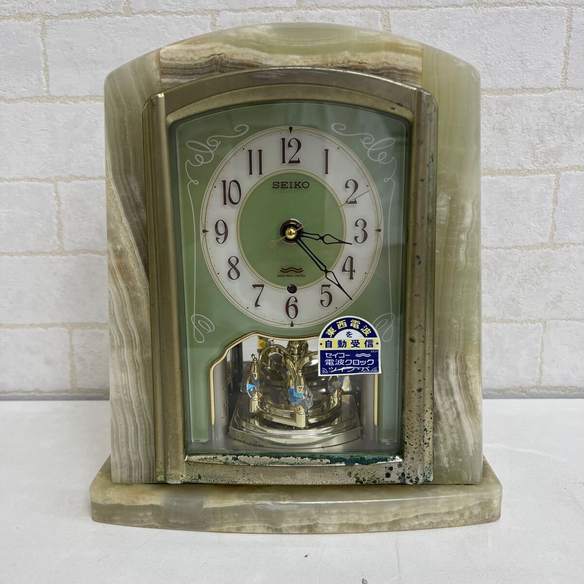 > HD719. 3. SEIKO セイコー タイムクリエーション 電波 置時計 クオーツ 電池式 オニキス 時計. 青錆劣化あり 振り子不動 時計動作品