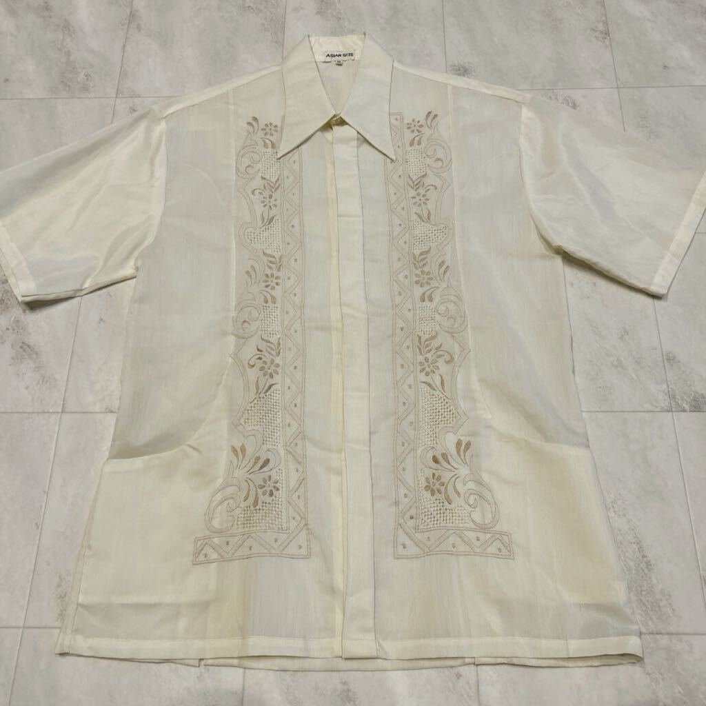 > 70s 一点物 VINTAGE ASIAN SIZE ハンドメイド 刺繍 ポケット 比翼ボタン レトロ アート ビンテージ 半袖シャツ
