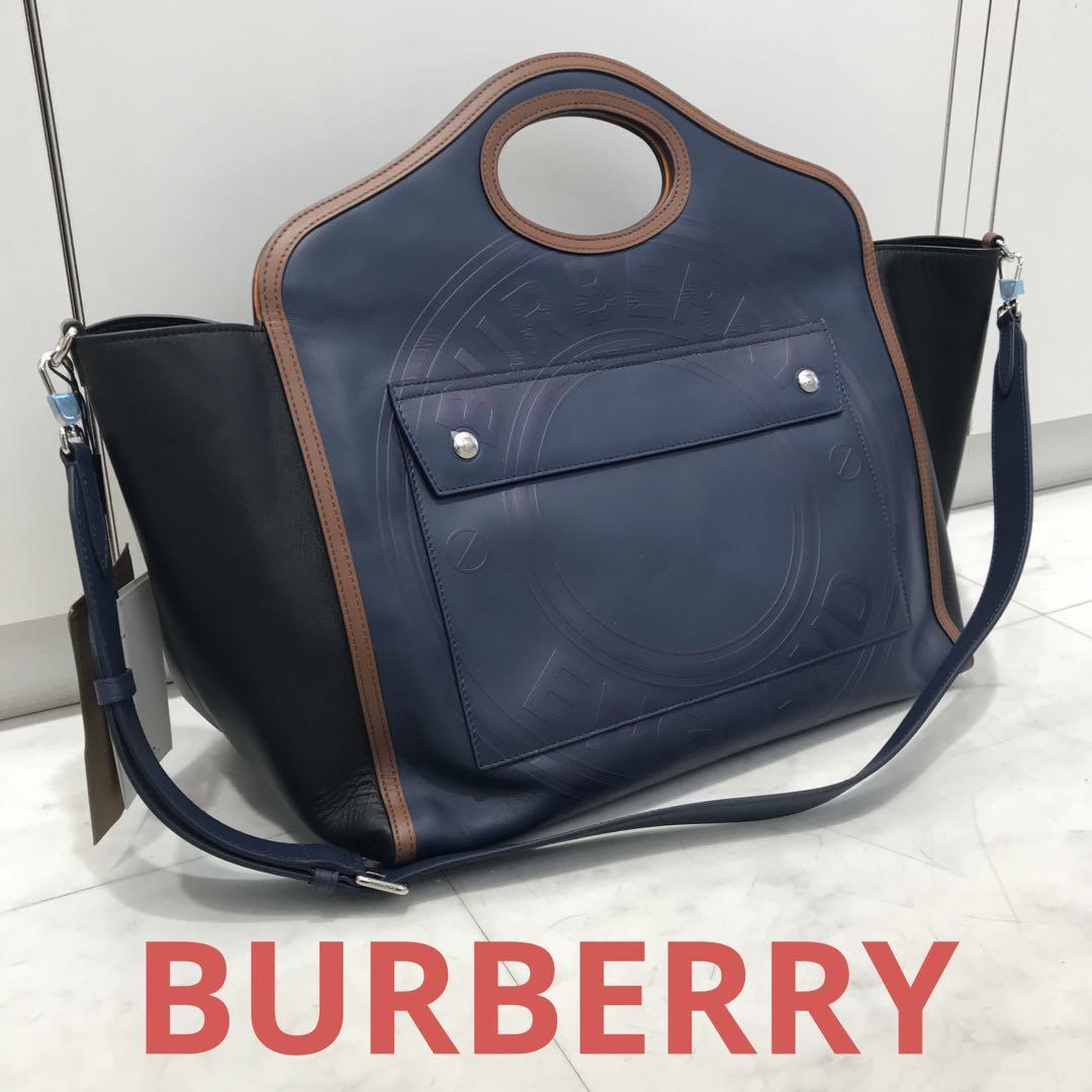 - ★未使用品★BURBERRY ポケット・トート 2wayバッグ ミディアム ロゴ