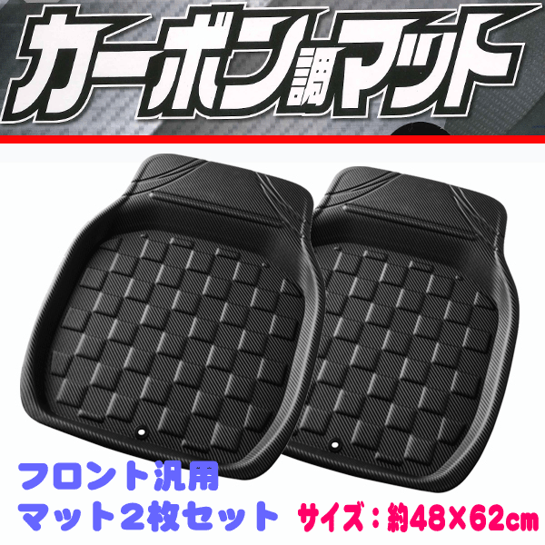 > 軽自動車~普通車/ミニバン/1BOX等 汎用 カーボン調 3D立体構造カーマット 3Dカーボンマット フロント用 2枚セット ブラック/黒色