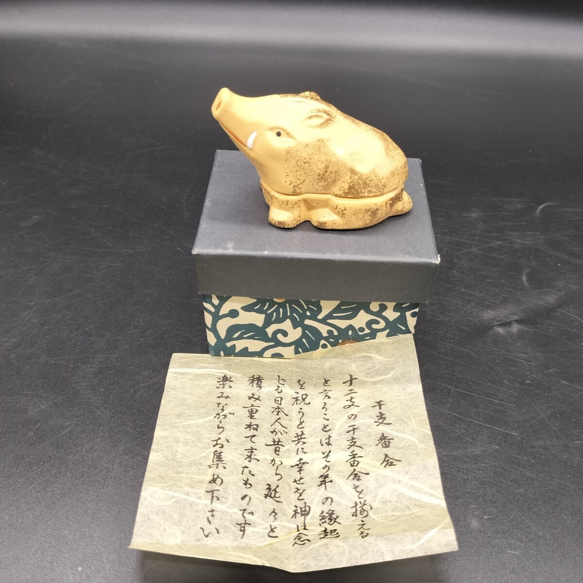 - 猪 干支 香合 茶道具 置物 陶器 飾り物 香子 いのしし イ4