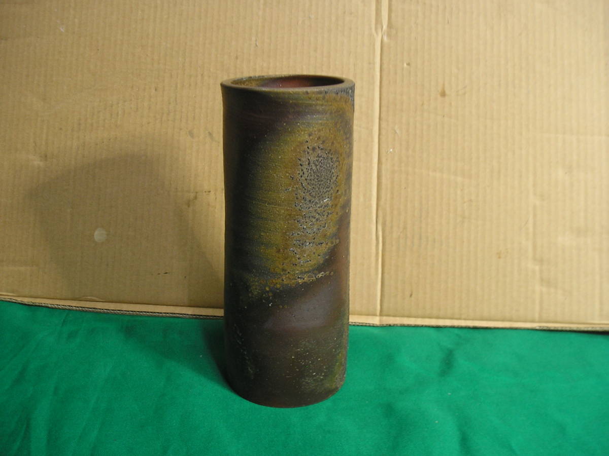 - 信楽焼き ◆ 花瓶 ◆ 縦22 幅8.7 ◆ 作者 刻印 【保管102】