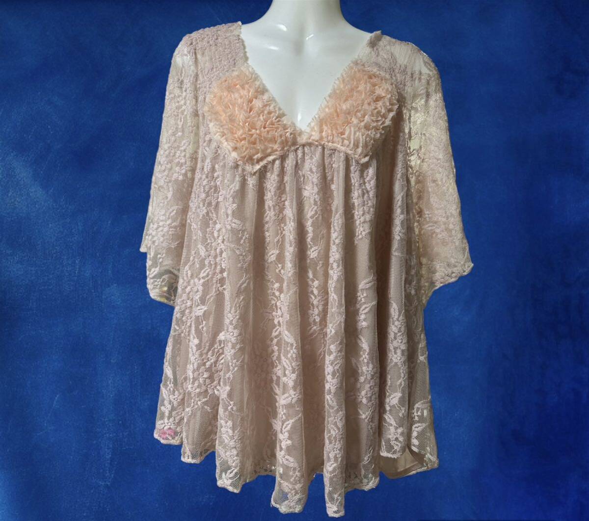 - 【新品タグ付き】グレイッシュピンク総レースプルオーバー♪~M~