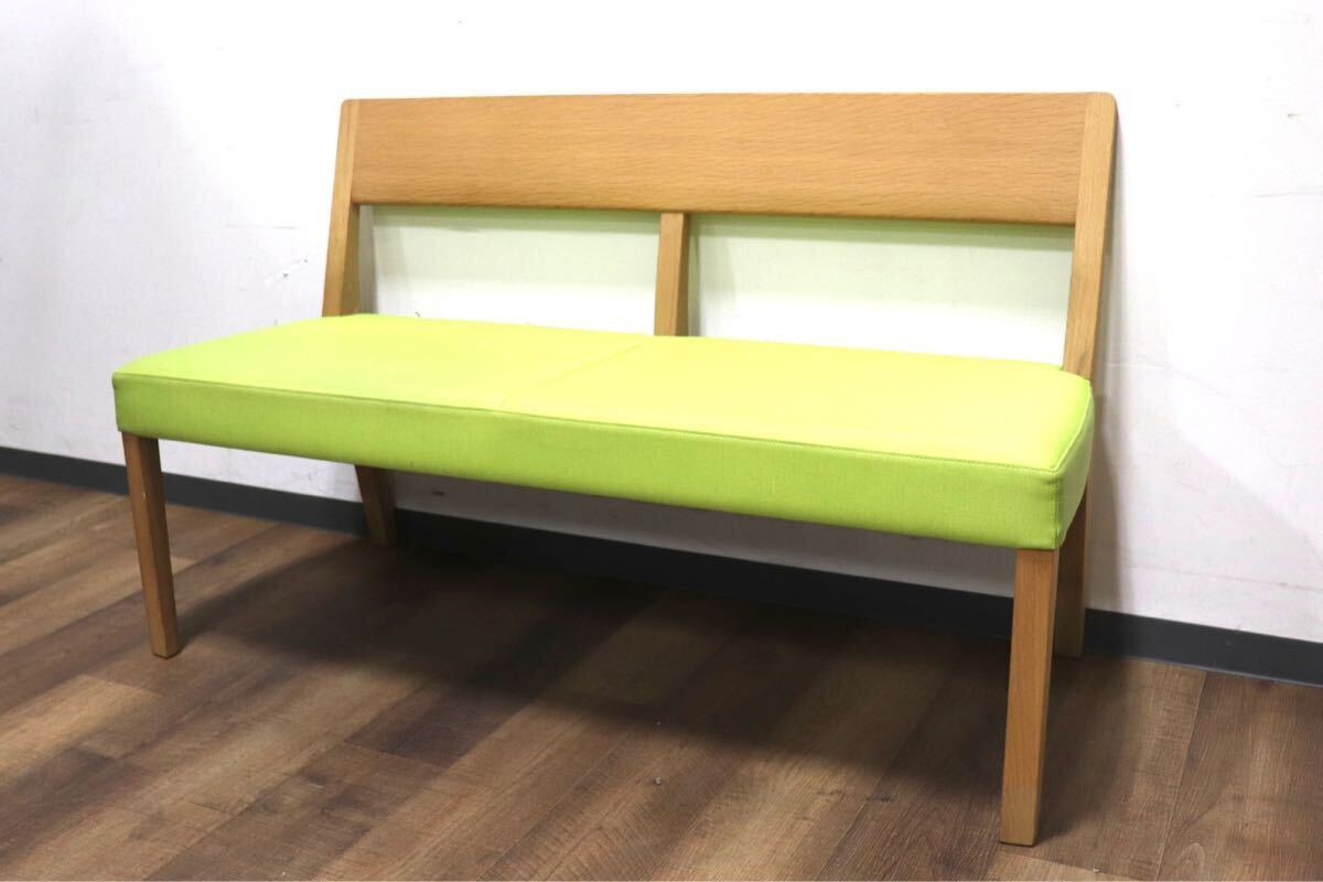 - GMHK283A○karimoku / カリモク CU4712 ダイニングベンチ 2人掛けチェア 食卓椅子 木製 ベンチ 合皮 ライムグリーン 国産家具 定価約8.6万
