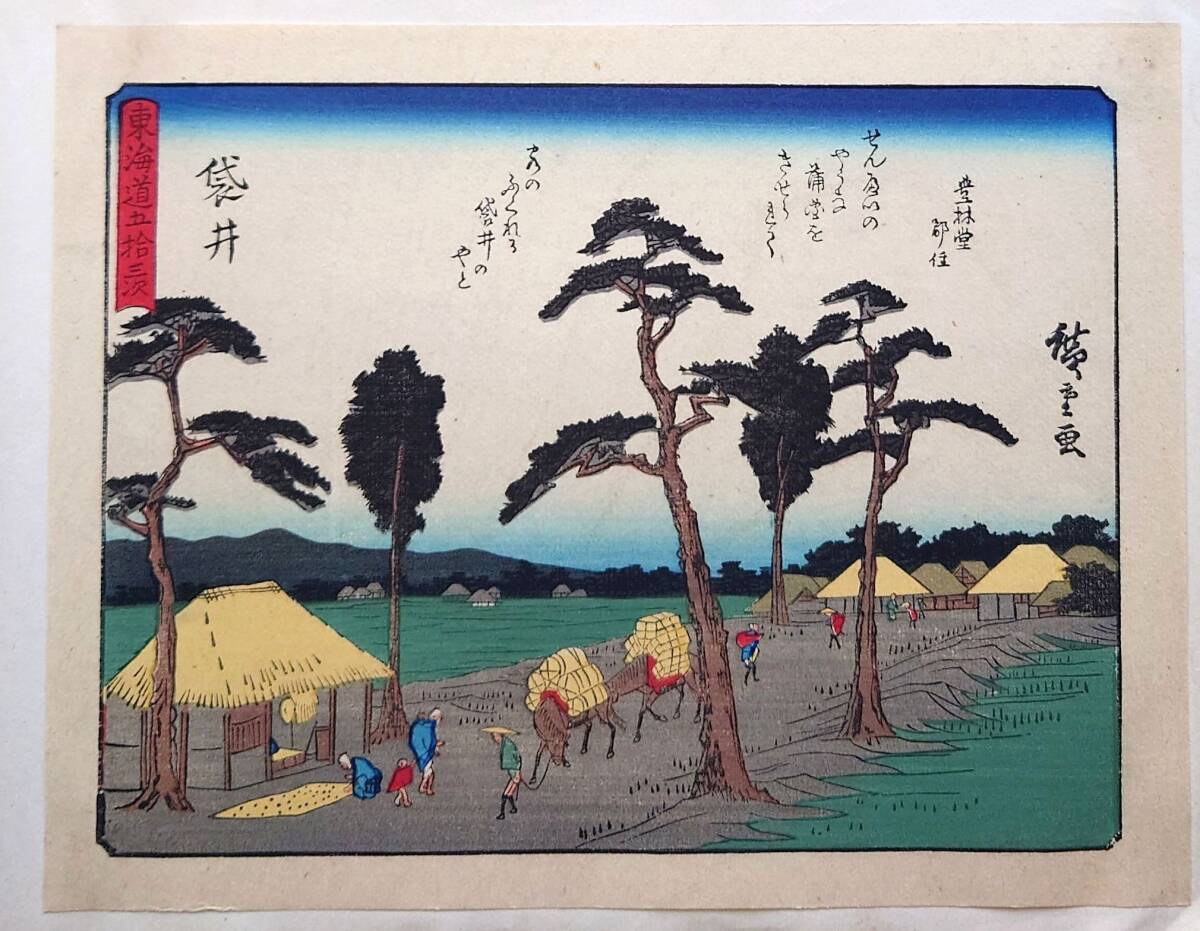 - f24040428〇彩色木版画 佐野喜版 狂歌入東海道五十三次 袋井宿 広重 複刻昭和年代〇和本古書古文書