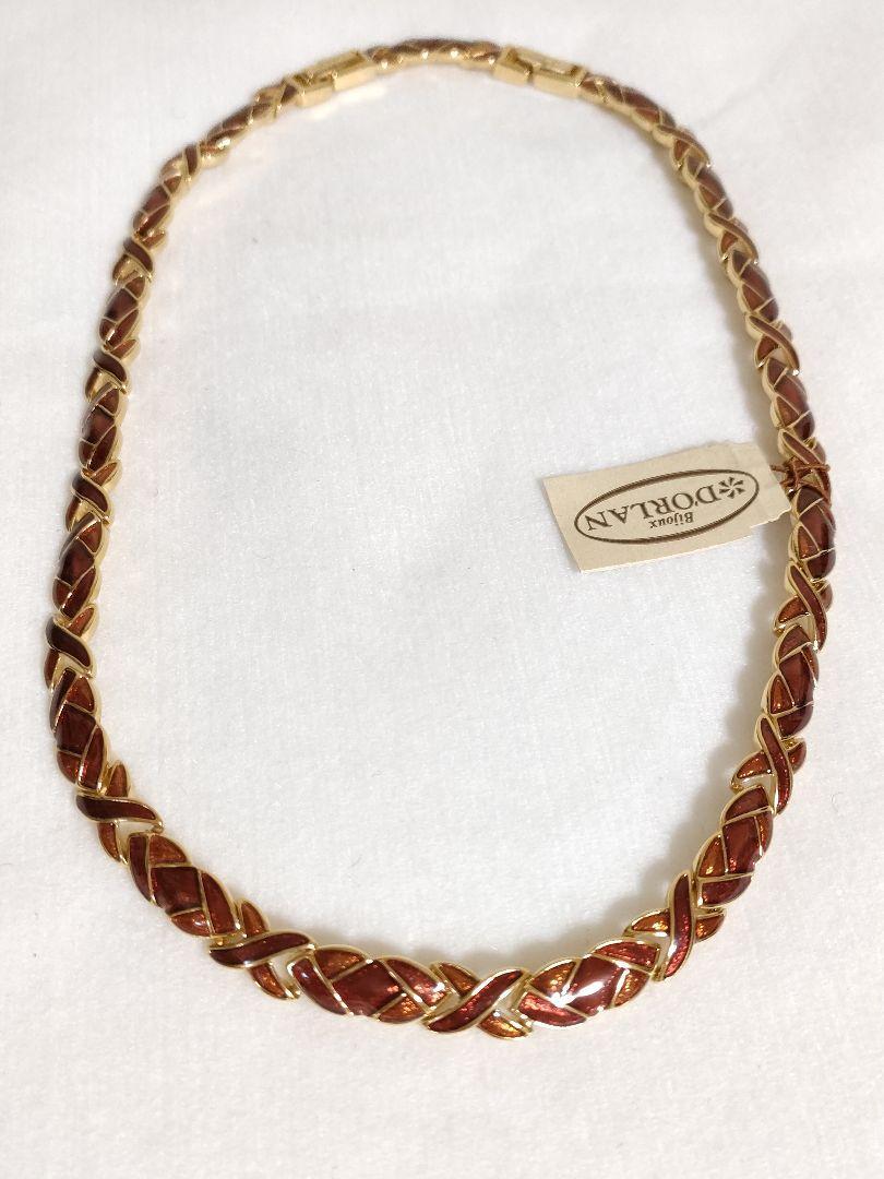 - 新品タグ付き D'ORLAN ドーラン ネックレス ゴールド x レッド 編み