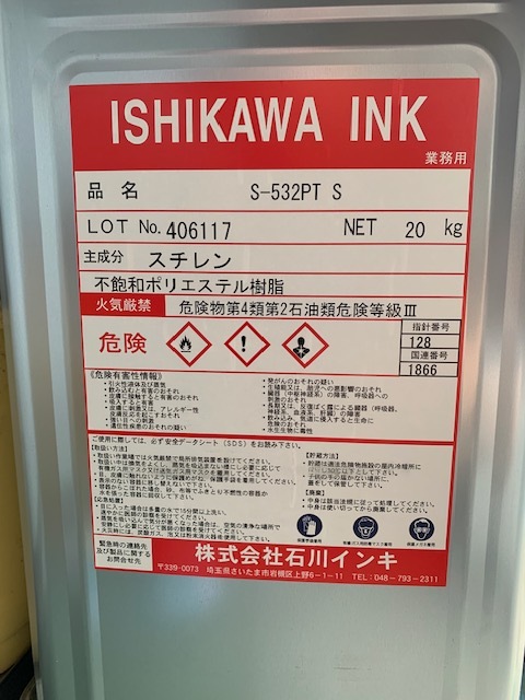 - 石川インキ S-532PT バックアップ用樹脂 20キロ FRP エアロ カーボン