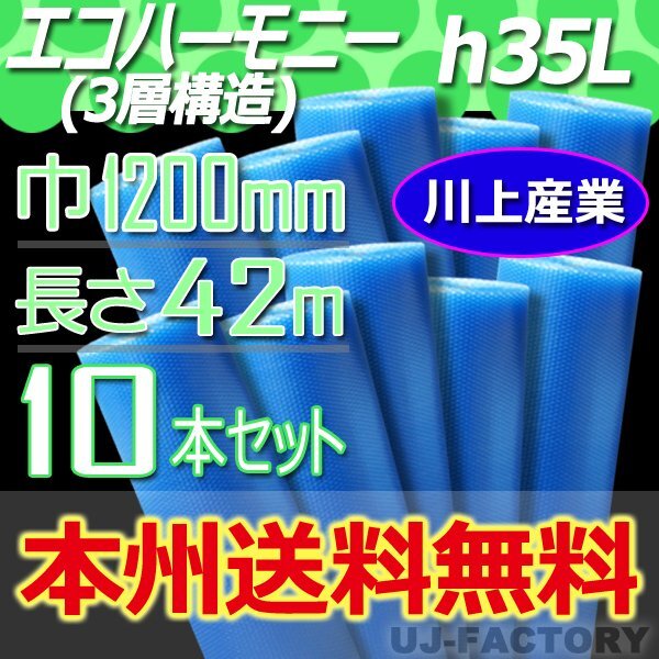 > 【送料無料!/法人様・個人事業主様】★川上産業/3層構造 1200mm × 42m (H35L) × 10本セット★プチプチ・エコハーモニー/クリア
