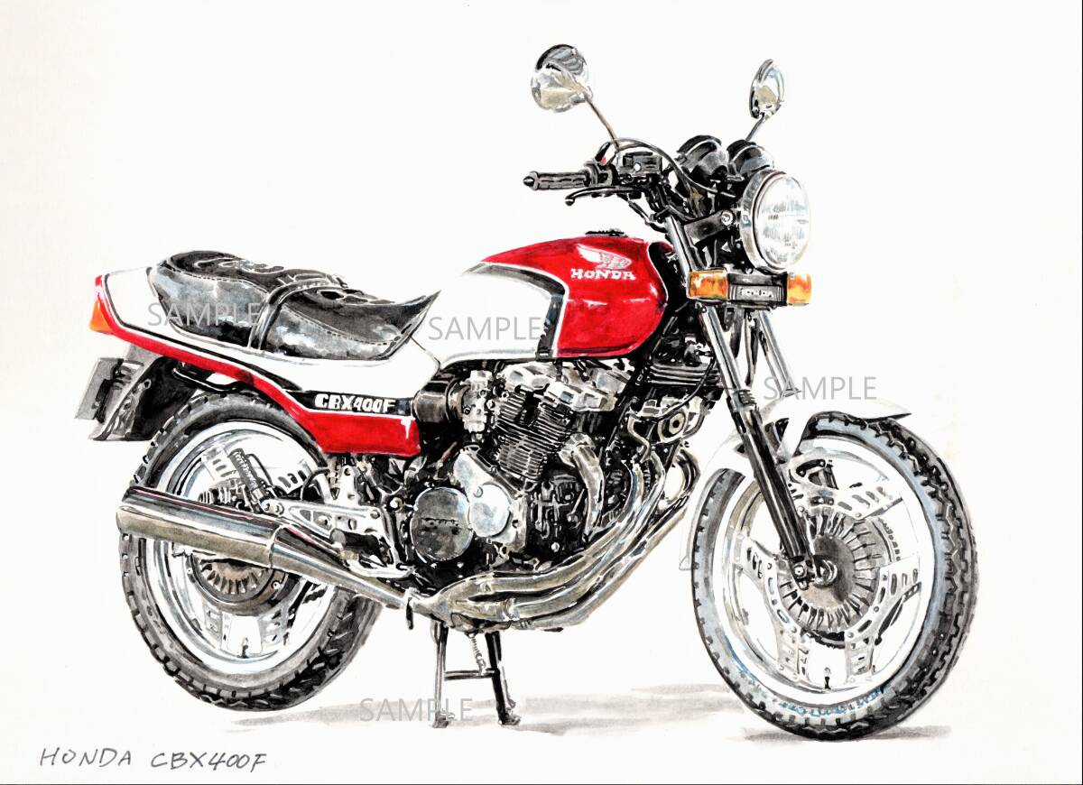 - A4プリントです ホンダCBX400F 水彩画 バイクイラスト