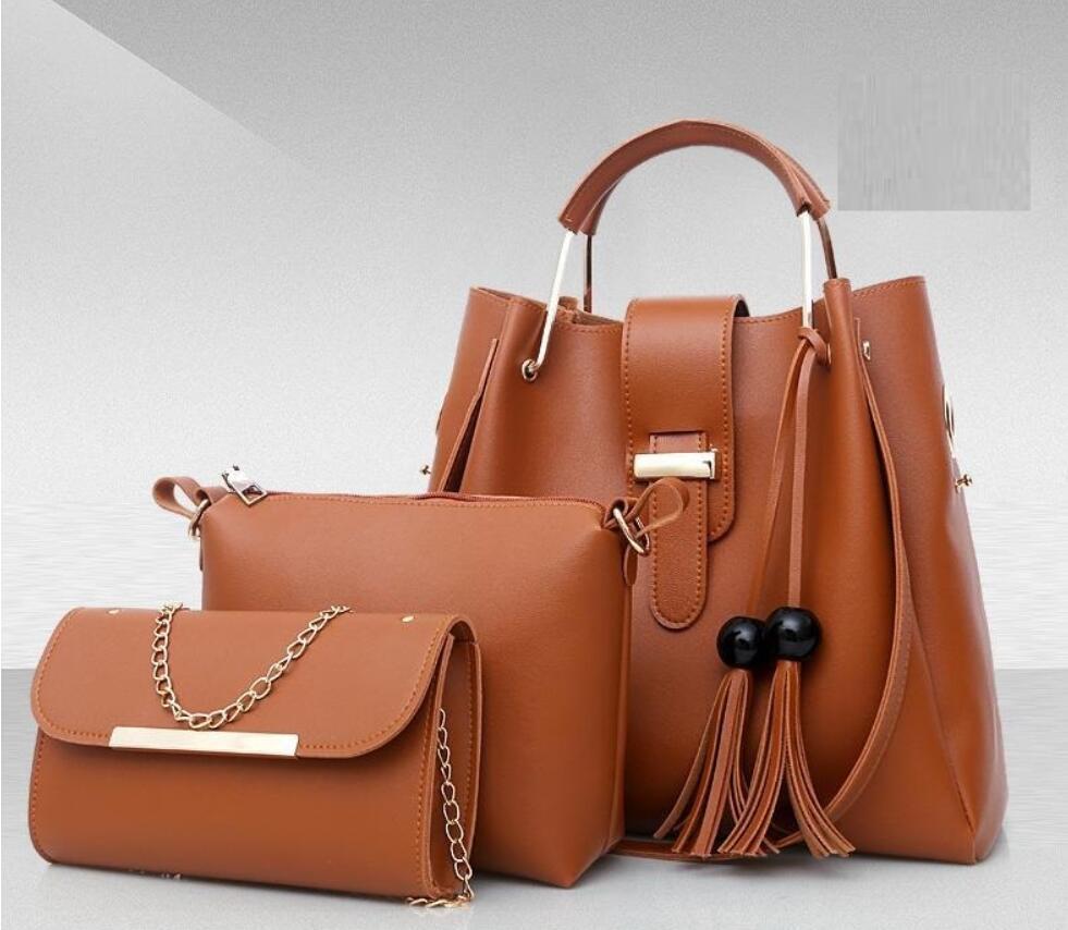 - 6色選択可 / 新入荷 大人気 レディースバッグ 3点セット レザー ショルダーバッグ ハンドバッグ 財布 トート PU / ブラウン