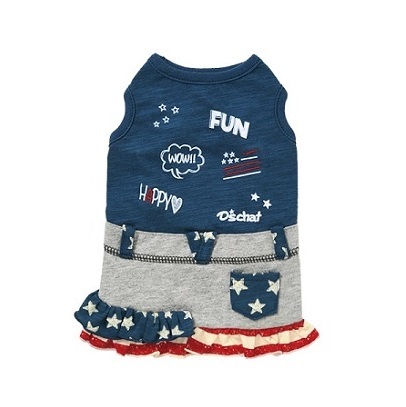 > 新品★D's chat★アメリカン柄スカートワンピース★ネイビー★Mイズ★胴回り37~39cm★犬服