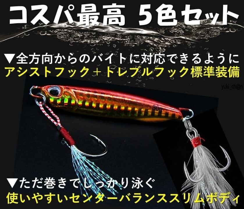 - ルアー 5色セット ぶっ飛びメタルジグ 20g 強化フック搭載 青物 タチウオ サワラ シーバス ヒラメ センターバランス ショアジギング
