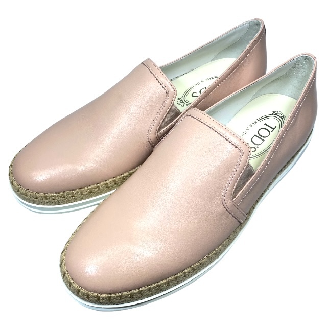 - 【未使用】TODS トッズ シューズ スリッポン 靴 ドライビングシューズ エスパドリーユ レザー ピンク [サイズ 39 1/2(約26.5cm)]