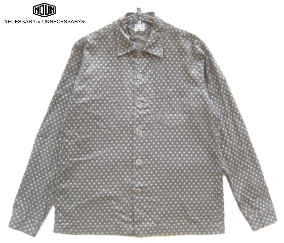 > 美品!!ネセサリーオアアンネセサリー NECESSARY OR UNNECESSARY*日本製 総柄長袖シャツ 2 実寸M カーキ×白 マンボラマ