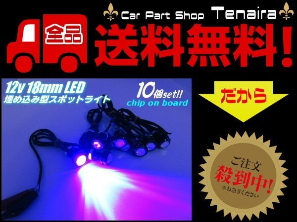 > 12v イーグルアイ COB LED スポット ライト 10個セット 青 ブルー φ18mm 埋め込み ボルト型 イルミネーション メール便送料無料/6