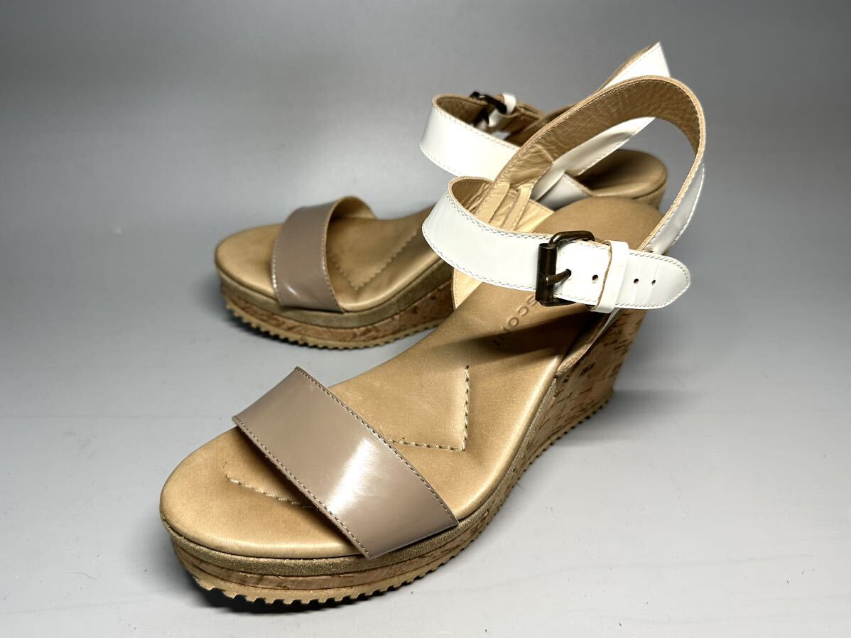 > 【即決】FABIO RUSCONI レディース 23.5cm ファビオルスコーニ 白 茶色 サンダル 靴 くつ ウェッジソール オシャレ