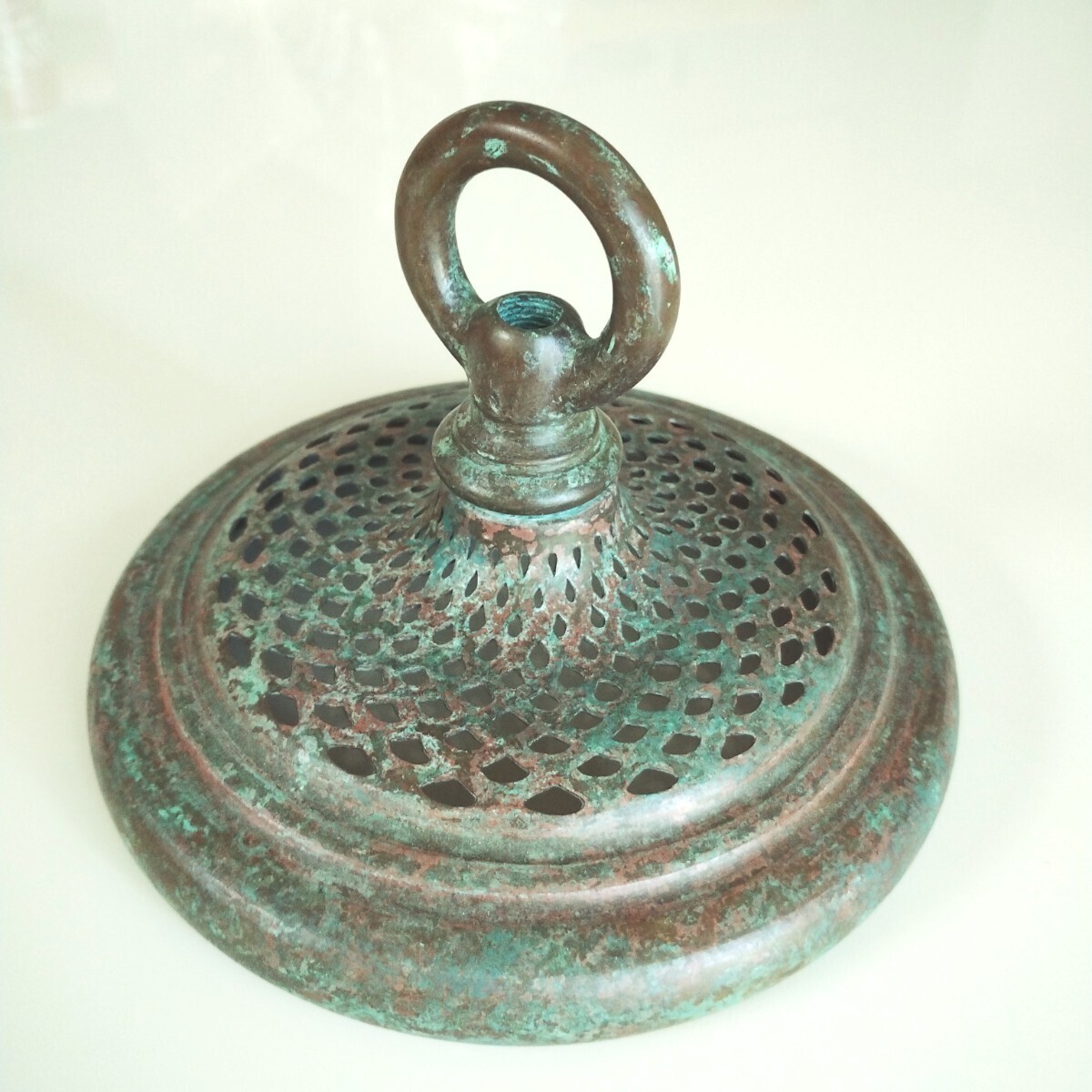 > 5インチ ティアドロップハンギングキャップ オデッセイ グリーンパティーナ仕上げ GP ステンドグラス材料 ティファニーレプリカ ランプ