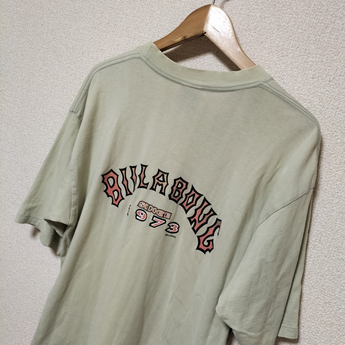 > ☆OLD BILLABONG Tシャツ 半袖 BIGロゴ ラバープリント イエロー メンズ サイズL トップス カットソー オールド ビラボン サーフ 古着 USED