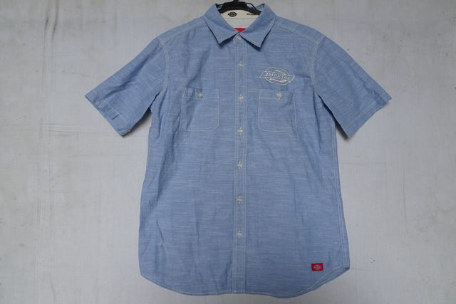 - Dickies/ディッキーズ/半袖シャツ/シャンブレー生地/両胸ポケット/裾ラウンドカット/霜降りカラー/水色/Mサイズ(8/20R)