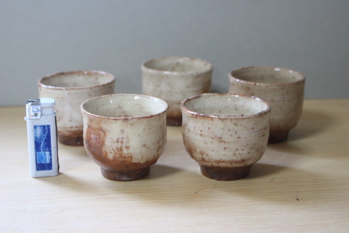 > 再■ み-292 焼物 猪口(ちょこ) 5個 未使用 古いお品 箱なし 大きさ/約寸 単品)高4.8cm 直径6cm 重さ60g 窯キズ有