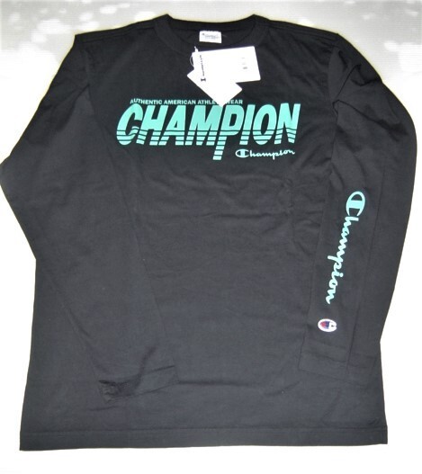 > セール15% champion チャンピオン ロゴ アート プリント 袖プリント Tシャツ 長袖 ロングスリーブ 黒 M メンズ レディース C3-U417 人気 お