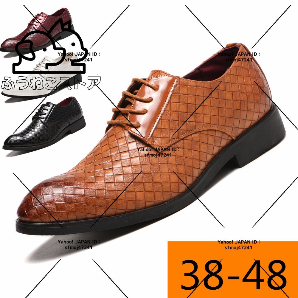 - 人気品 新入荷 お色選択可 ビジネスシューズ メンズ シューズ 紐靴 PU革靴 ロングノーズ 編み柄 紳士靴 オシャレ レースアップ ブラウン