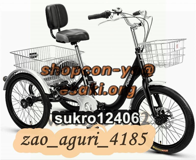 - 7スピード 三輪自転車 調節可能な背もたれシート 大人用高齢者用 折りたたみ式三輪車 20インチショッピングバスケット付き