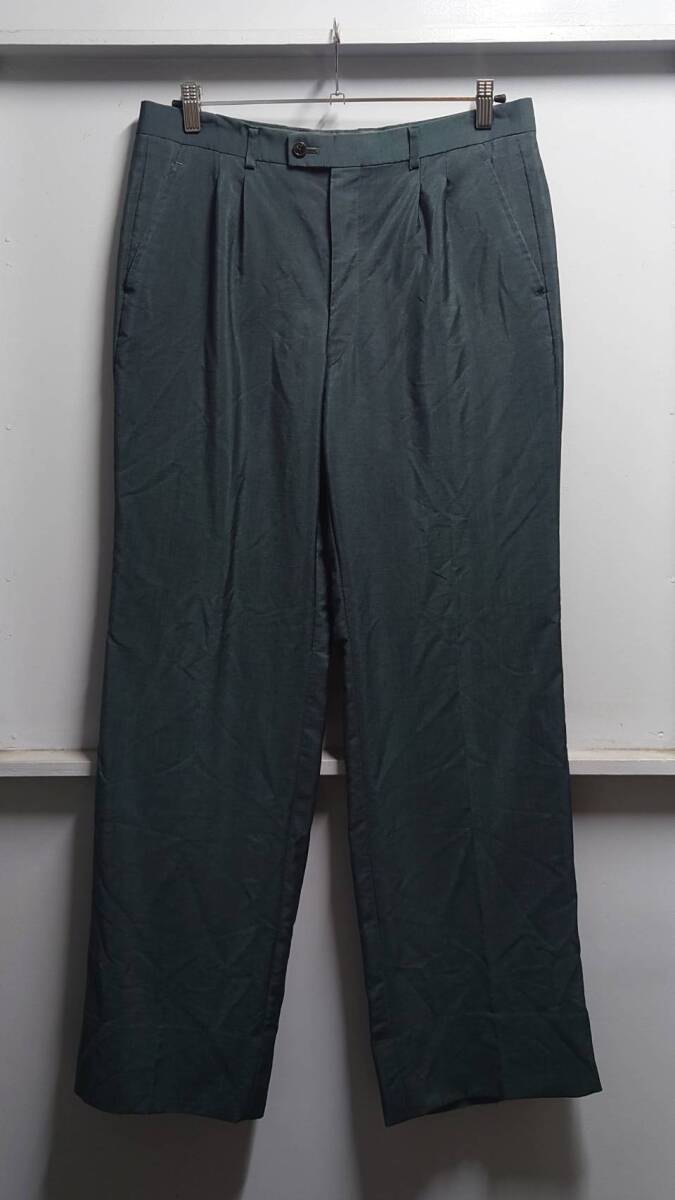 - 90’s LANVIN モヘア混 ツータック ウールスラックス グリーン系 サイズR50-46-88