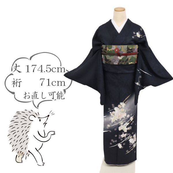 - 【付下げ】 長尺 極上刺繍 付下げ 舞う蘭花模様 伊と幸 薄黒 袷 正絹 着物 SB2-17
