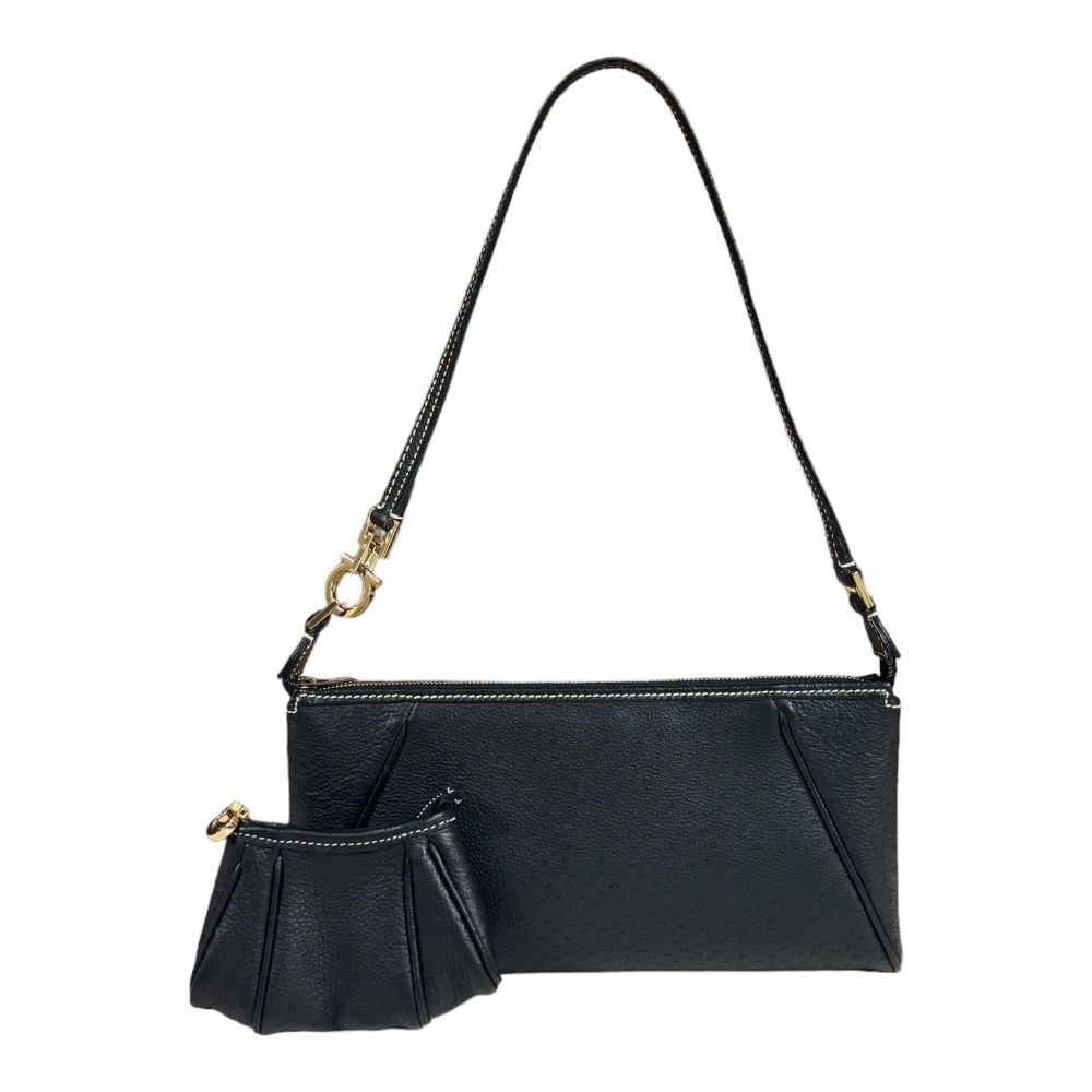 > サルヴァトーレフェラガモ ガンチーニ ハンドバッグ レザー AU-21 3435 ブラック レディース Salvatore Ferragamo 中古