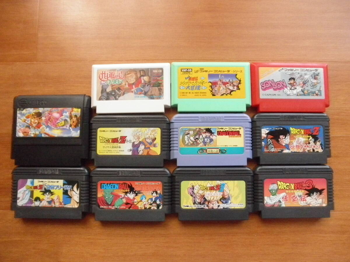 > ●FCソフトセット 孫悟空11本(ソンソン、元祖西遊記スーパーモンキー大冒険、西遊記ワールドⅠ~Ⅱ、ドラゴンボール7種) 初期起動確認済