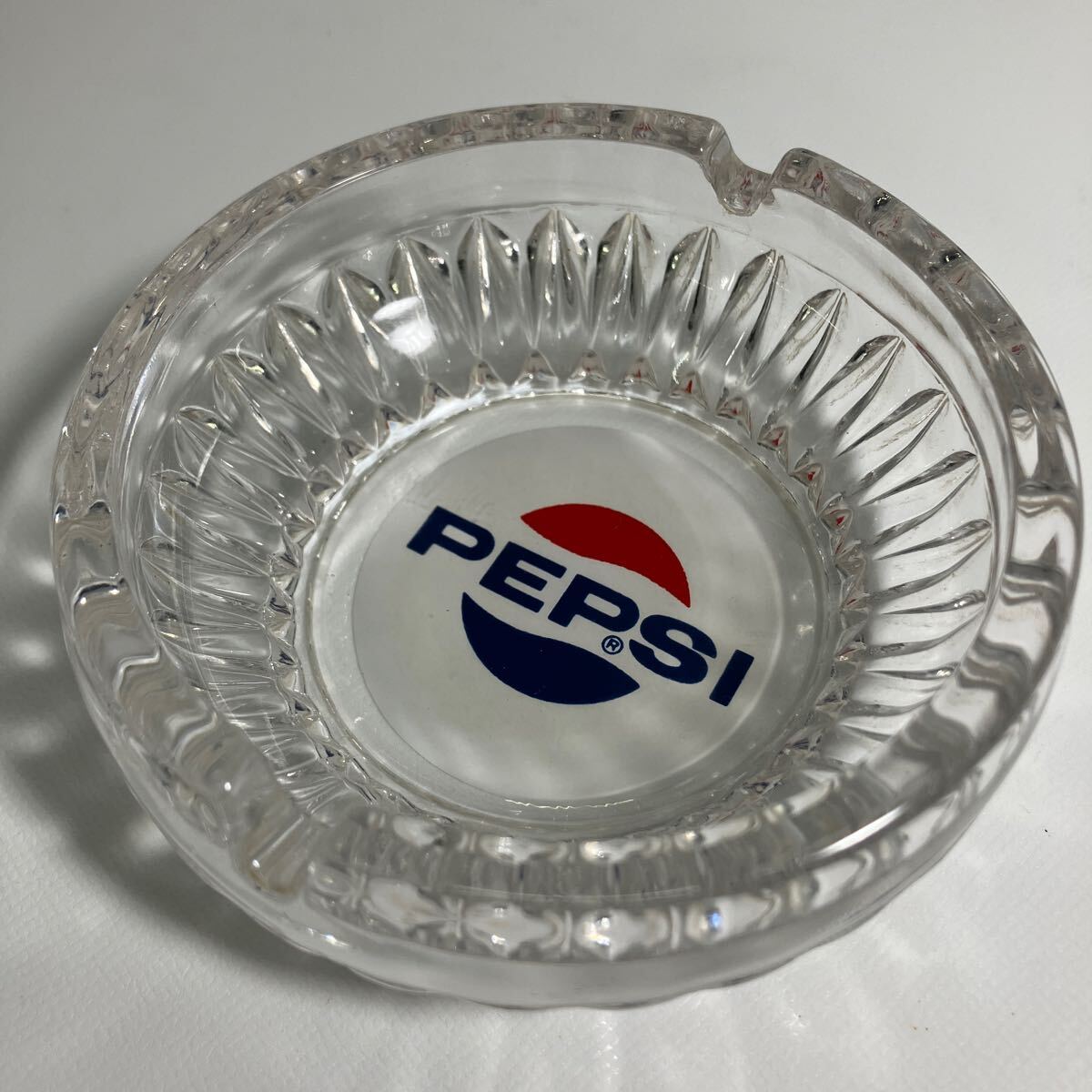 - 昭和レトロ PEPSI ペプシ ロゴ入り 灰皿 丸型 直径9cm ガラス製 喫煙グッズ ②
