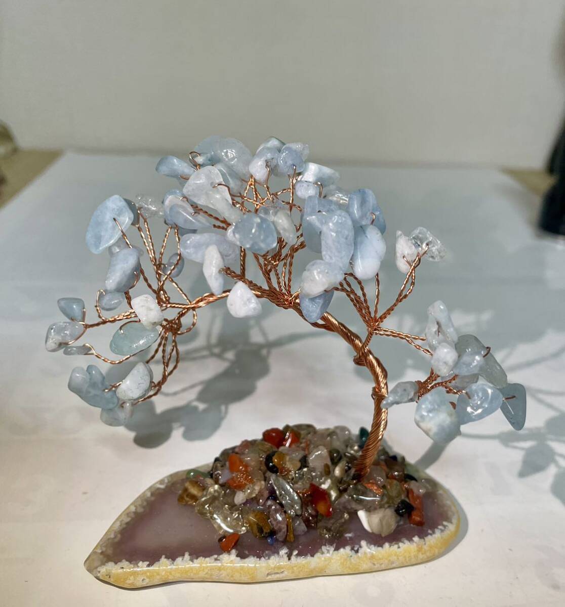 - 招財樹 ストーンツリー アクアマリン クォーツ パワーストーン ラッキー 天然石 置物インテリア 水色 ブルー