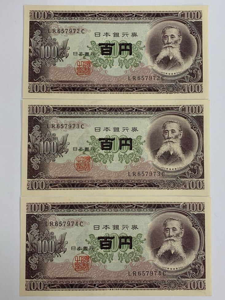 - ★旧紙幣 板垣退助 百円札 連番3枚セット ② 日本銀行券 100円札 ピン札