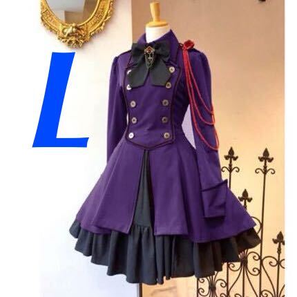 - 膝丈ワンピース 軍服 ロリータ ワンピース ゴスロリ ドレス ダンス クリスマス パーティ 衣装 人気 好評 紫 パープル バイオレット L