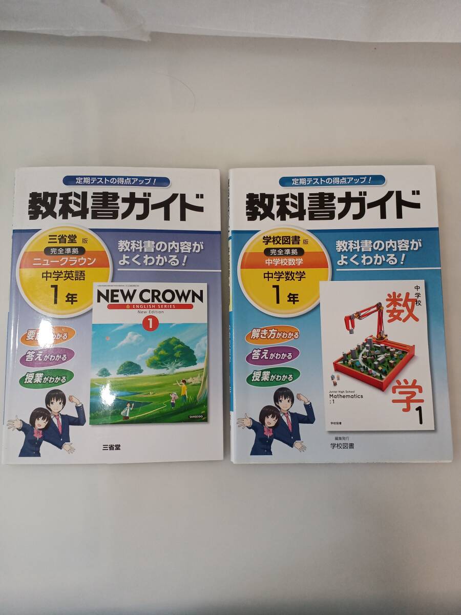 - zaa-611♪教科書ガイド三省堂版完全準拠ニュークラウン1年 中学英語+教科書ガイド〈中学数学1年〉 学校図書 2冊セット